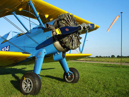 Stearman N4712V resting by the wind-sock